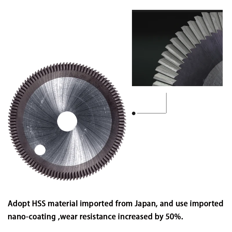 - Sharp, aimed at the high speed of the electronic key machine, we design a back angle of easy chip removal, cut fast and light, cut brass key and nickel-copper key smooth without burrs.