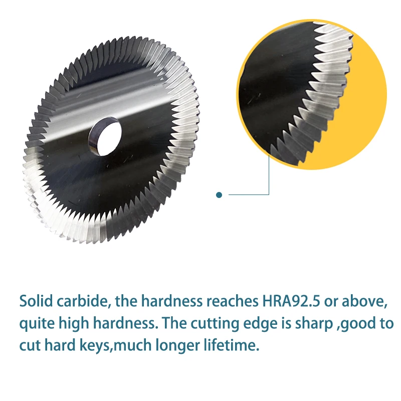 Carbide Material: Solid carbide, the hardness reaches HRA92.5 or above, quite high hardness. The cutting edge is sharp .Good to cut hard keys.