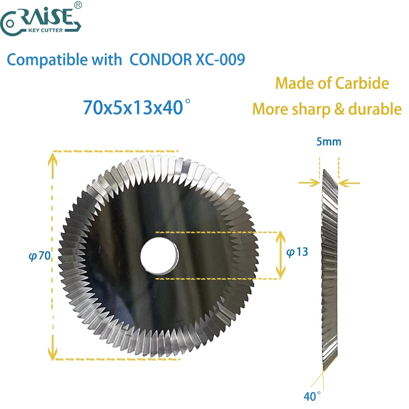 Condor XC-009 Cutter Wheel 70x5x13x84° for Key Cutting Machine