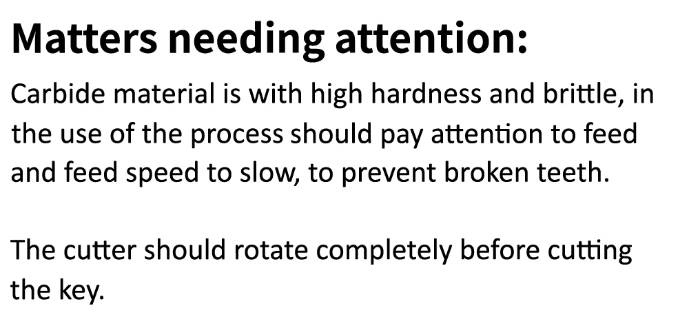- Whole piece of carbide, the hardness reaches HRA 92.5 or above, quite high hardness. The cutting edge is sharp and no longer need to change the cutter when cutting the iron key, greatly save your precious time.