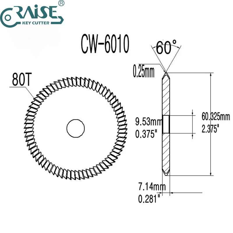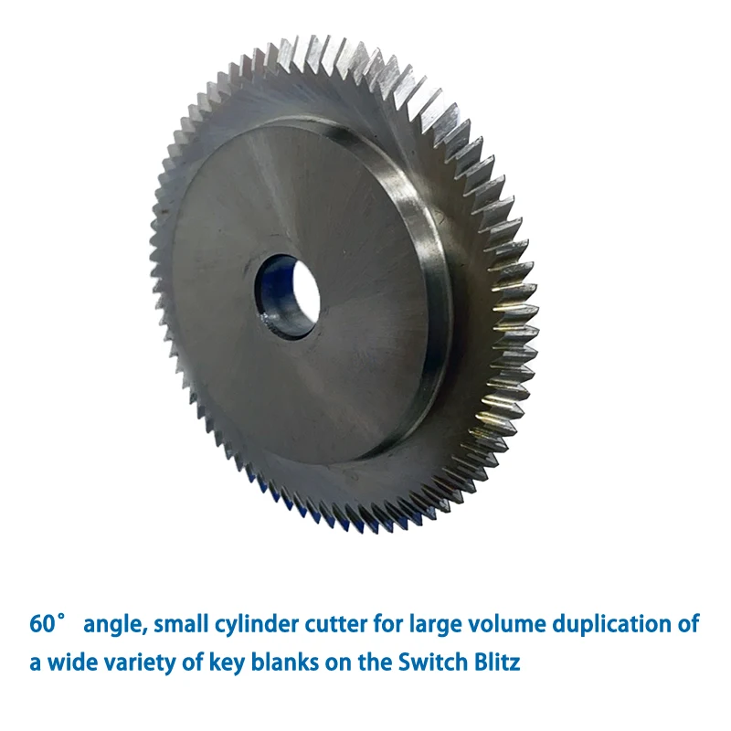 - (60° angle, small cylinder cutter for large volume duplication of a wide variety of key blanks on the Switch Blitz)